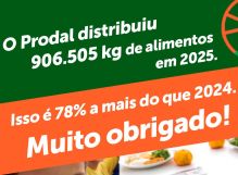 O Prodal Banco de Alimentos distribuiu 906.505 quilos de alimentos em 2025. O número representa 78% a mais do que 2024, quando foram distribuÃdos 507.756 quilos. Com o aumento, o Prodal conseguiu cadastrar 13 instituições que estavam na fila de espera, fechando 2025 com 137 entidades beneficiadas semanalmente.